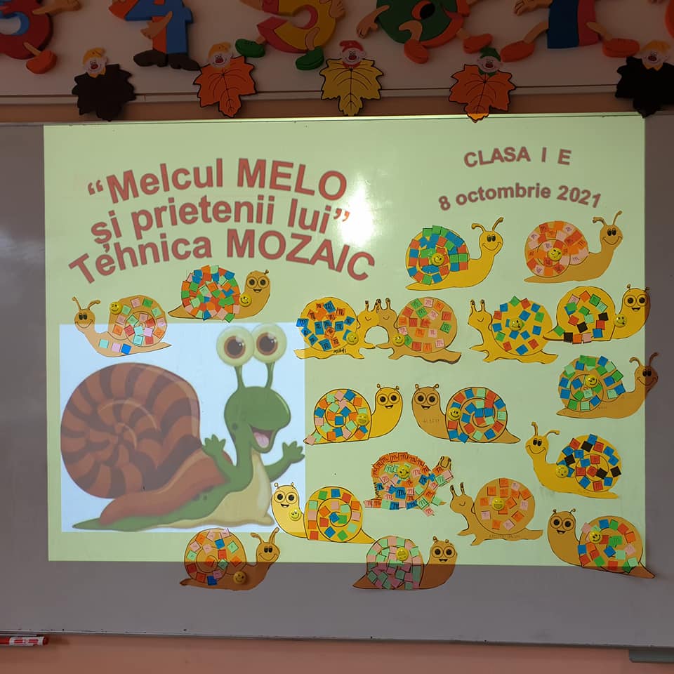 Melcul MELO și-a găsit muuulți prieteni în Clasa I E! L-au ajutat ALBINUȚELE “BeeSmart” , la ora de ARTE VIZUALE ȘI ABILITĂȚI PRACTICE. Cu îndemânare , folosind Tehnica MOZAIC, plastilină, castane, degețelele iscusite ale micilor școlari l-au făcut fericit pe MELO, clasa fiind “invadată” de prietenii lui!