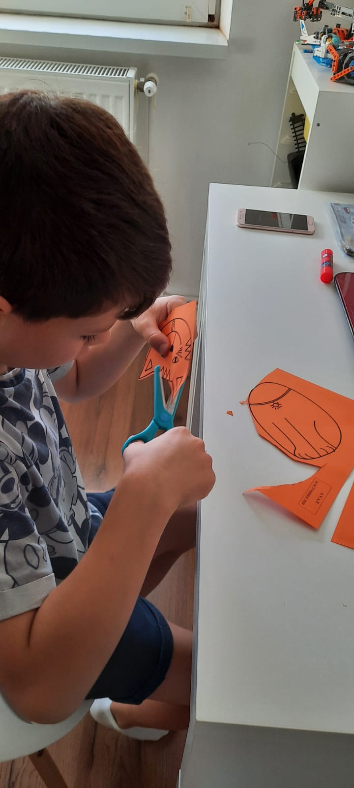 Copiii au decupat respectând conturul, apoi au lipit cele trei părți, astfel încât să obțină figurina dorită!