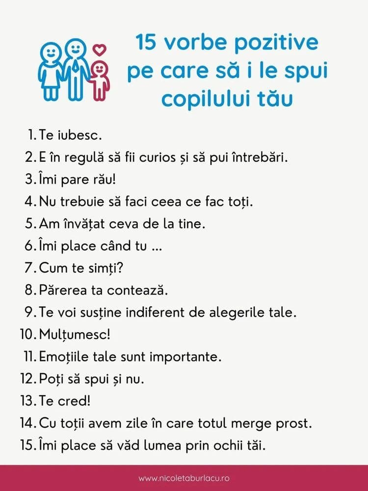 Click pe „Read more” pentru „15 vorbe pozitive pe care să i le spui copilului tău”! Sfaturi pentru copilul tău